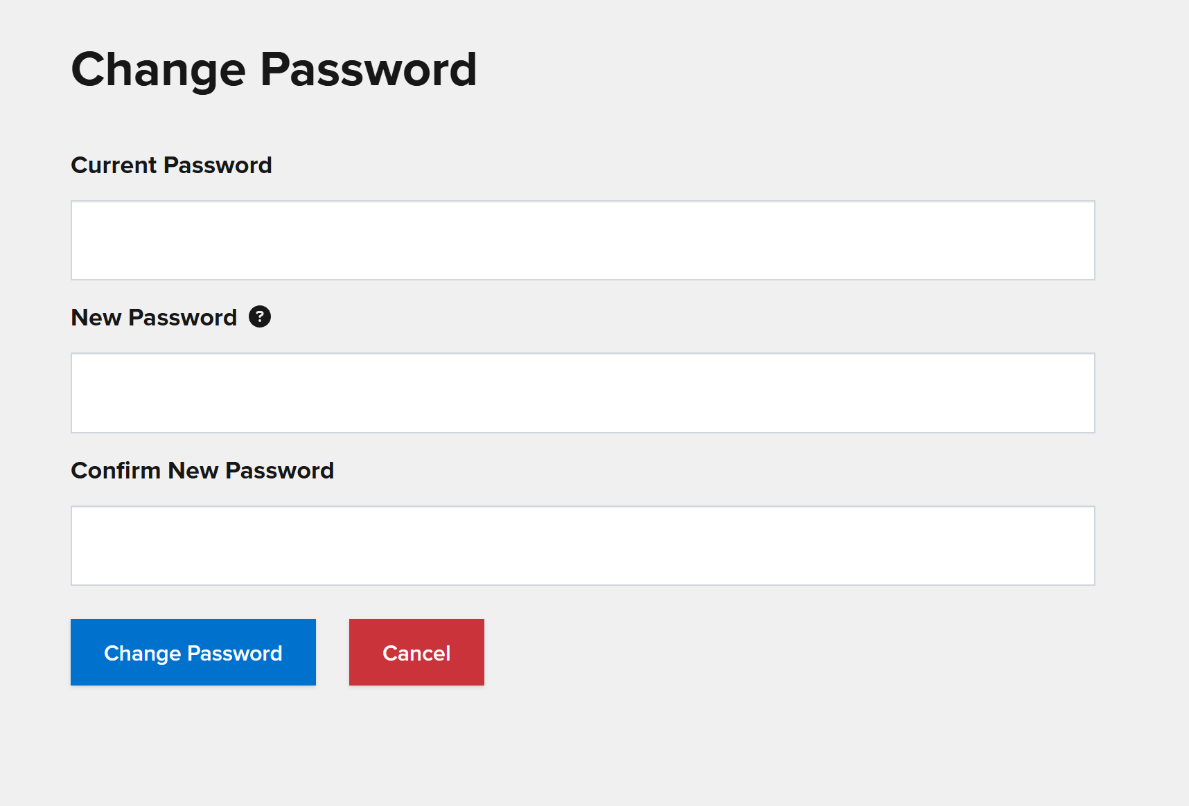 To change the password for the current user, first ensure you are on the User Details page. Click the Change Password button. In the form, enter a new password and click Change Password.